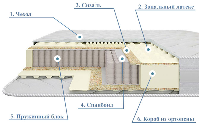 - Короб из ортопены. Современный вспененный прочный и эластичный материал по всему периметру матраса помогает сохранить форму на протяжении всего срока эксплуатации. Защищает чехол от пружин..