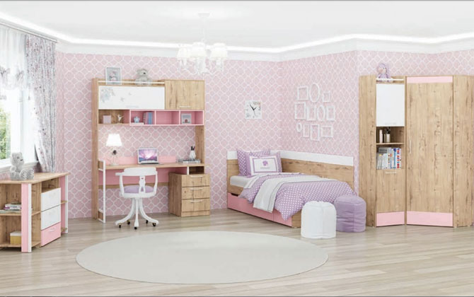 Дуб ирландский + Розовый кварц + Белый; Дуб ирландский + Слайт + Белый