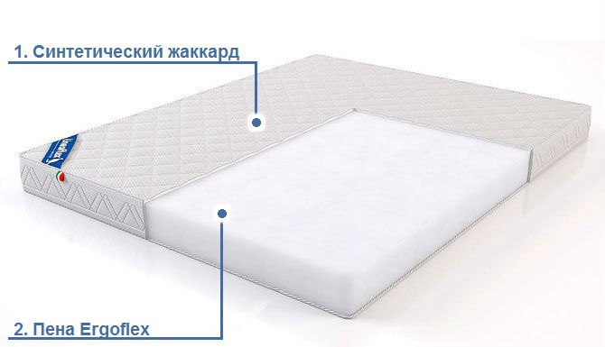 - Высокоэластичная недеформируемая пена Ergoflex (20 см). С такой основой матрас не проседает в спальном месте и его края держат форму весь срок своей службы. Пена с повышенной плотностью выдерживает нагрузку до 120 кг. Равномерное распределение ячеек по всей площади матраса обеспечивает вам крепкий сон и качественный отдых.